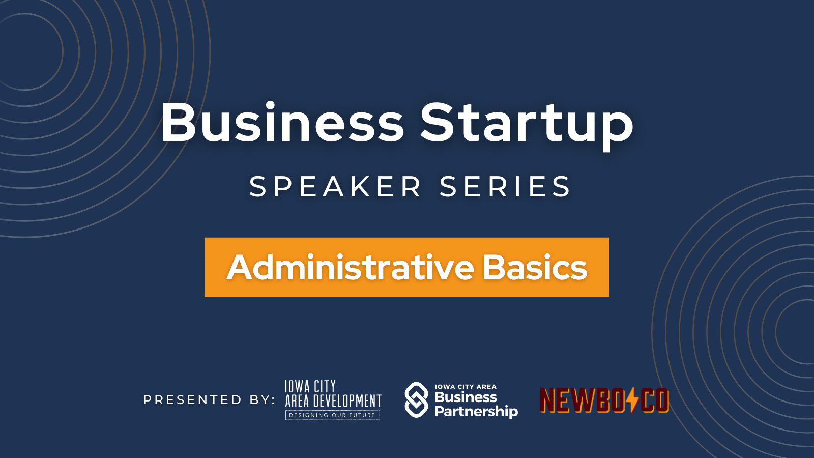 The Business Startup Speaker Series — presented by the Iowa City Area Development Group/Iowa City Area Business Partnership and NewBoCo — leads current and aspiring entrepreneurs + small business owners through a Step-By-Step guide of all the things you need to know when starting and growing your business. From Administrative Basics to Branding, we'll cover it all.