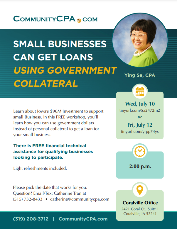 Questions? Email or call Catherine Tran: (515) 732-8433, catherine@communitycpa.com
