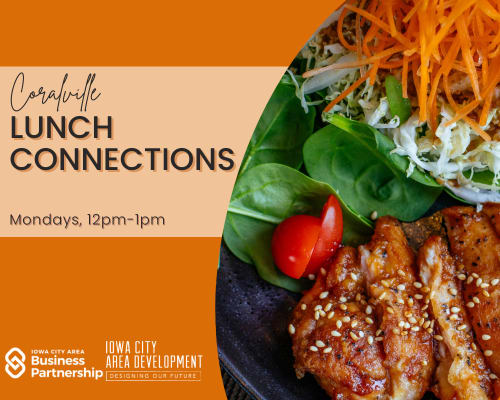 Our Coralville Lunch Connections are the place to see and be seen in the Coralville community! This is an informal networking opportunity for our current and future members of the Business Partnership and ICAD. Join us for lunch, conversation, and connections! Registration is required so that we can provide the host restaurant accurate numbers.