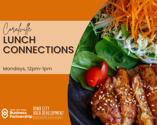 Our Coralville Lunch Connections are the place to see and be seen in the Coralville community! This is an informal networking opportunity for our current and future members of the Business Partnership and ICAD. Join us for lunch, conversation, and connections! Registration is required so that we can provide the host restaurant accurate numbers.