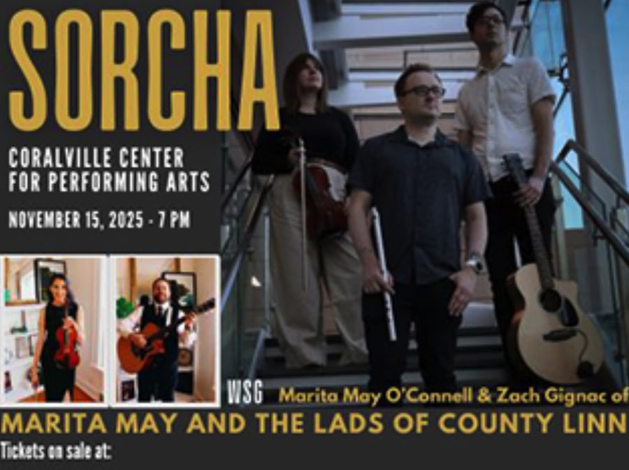 Join the Coralville Center for the Performing Arts for an exciting evening of live Celtic Music on stage - Sorcha and the Marita May Duo!